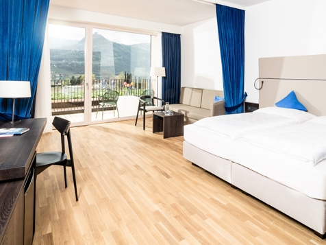 In mezzo a vigneti soleggiati e direttamente sulla spiaggia del Lago di Caldaro, relax, attività e divertimento per tutta la famiglia – il nuovo Hotel Thalhof**** al Lago di Caldaro realizzerà i vostri sogni di vacanza. Per i nostri ospiti offriamo nuove e eleganti camere con grandi finestre panoramiche e balconi verso sud. Rilassatevi nella nostra zona wellness con piscina coperta e bagno a vapore o nell’ampio giardino con piscina, prato per sdraiarsi e parco giochi. Il lago di Caldaro è un famoso lago balneabile e si trova soli due minuti a piedi dal nostro hotel.