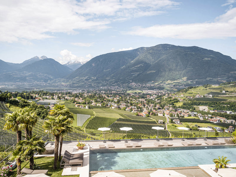 Sopra i tetti di Merano, in un paesaggio alpino-mediterraneo unico tra vigneti, cipressi e palme, si trova l'esclusivo posto in prima fila. Ospitalità vissuta, un tocco di lusso abbinato a una grande attenzione per i dettagli si trovano qui nell'affascinante boutique hotel. Il piccolo hotel a conduzione familiare è il rifugio ideale per gli intenditori e per chi cerca pace e tranquillità. Potrete rilassarvi nel giardino mediterraneo con piscina a sfioro riscaldata con acqua salata, nella splendida Sky Lounge e nell'area SPA.