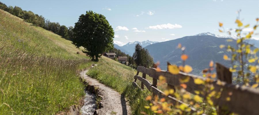 Procedete a destra sul sentiero nr. 9. Attreversate il bosco e raggiungete la Malga Mariolberg Alm. Da qui seguite il sentiero nr. 3a fino alla Malga Falcomai di Dentro, dove potrete fermarvi per fare una breve sosta. Successivamente risalite fino al Lago Falcomai.
